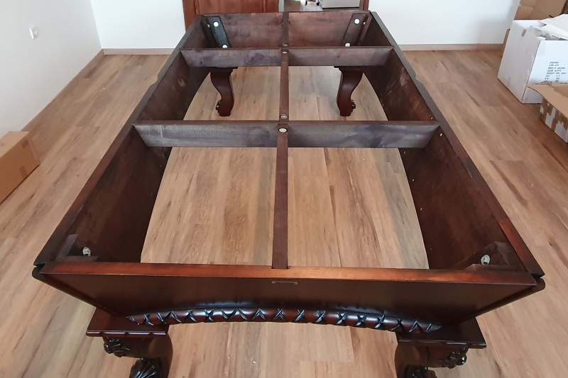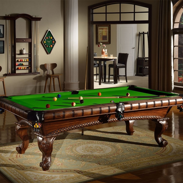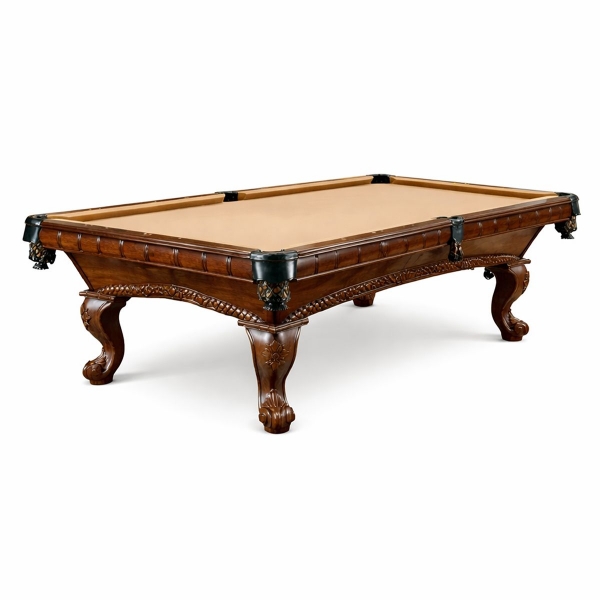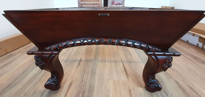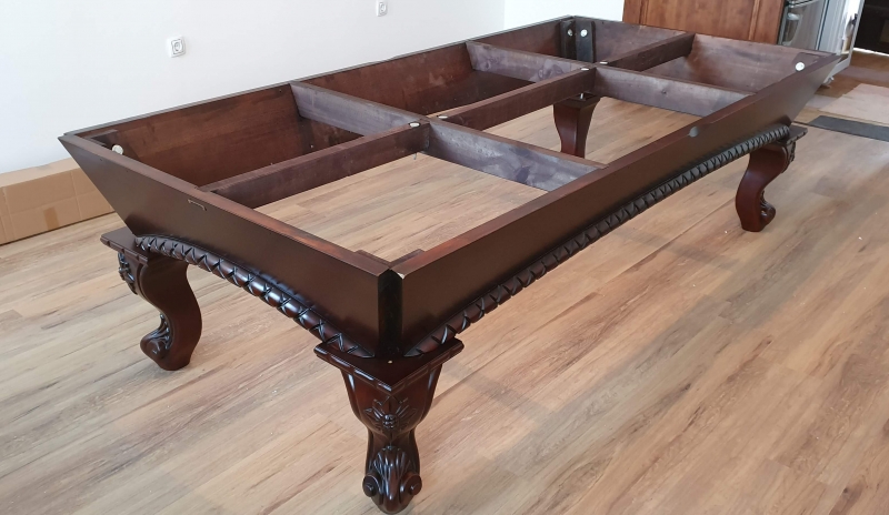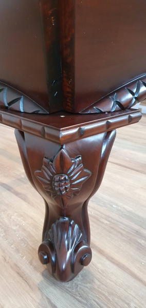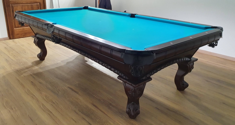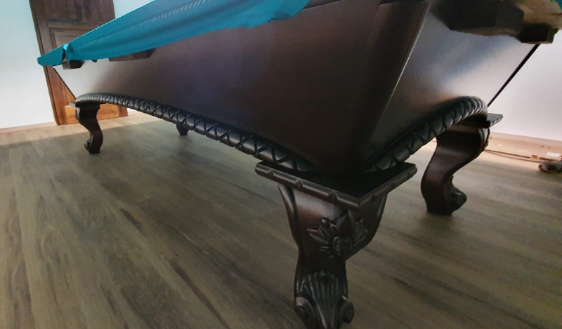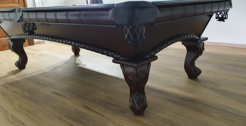 Zelo lepo izdelana biljard miza Arizona 8ft, pobarvana na starinski način v barvo temnega mahagovijevaga lesa z razbarjenimi detajli.