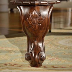 Vsaka od štirih bogato struženih lesenih nog je skrbno izdelana iz masivnih lesenih blokov, preden so vgrajeni dodatni okraski.