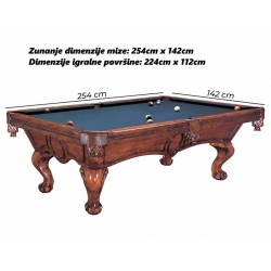 Velikost 8 čevljev | Zunanje dimenzije: 254 x 142 cm | Igralno polje: 224 x 112 cm | Teža: približno 375 kg