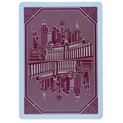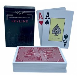Pralne ter izredno trpežne 100% plastične karte SKYLINE, s fotografijo ikoničnega obzorja Las Vegasa na hrbtni stranji, rdeče barve, ki imajo veliki prikaz "Jumbo Index" kartnih simbolov. Dimenzije kart: 63mm x 88mm (š,d). Paket vsebuje 52 kart in 2 Jokerja.