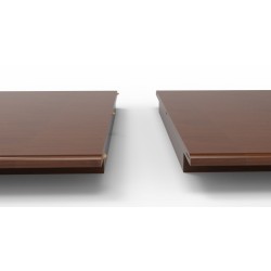 Ujemajoč se pokrov, oziroma pokrivna plošča za biljard mize Arizona 8ft, Golden West 8ft in Wellington 8ft v rustikalnem barvnem odtenku bo vašo biljardno mizo v hipu spremenil v elegantno jedilno ali konferenčno mizo. 3-delna pokrivna plošča je izdelana iz masivnega rdečega bukovega lesa in ter pobarvana v ujemajočo barvo (mahagoni) bljard mize. Ploše so povezane s povezovalnimi vložki v robovih, ki se medsebojno stikajo kar omogoča hitro in natančno namestitev. Zunanji robovi pokrivnih plošč so lepo zaobljeni, da se ujemajo z mizo. Ker je osnovna plošča pri biljardnih mizah Arizona in Wellington postavljena nekoliko bolj proti sredini, je na omenjenih mizah na voljo prostora za noge približno 72 centimetrov. Pri mizi Golden West biljard mizi je prostora za noge malo manj, saj je vertikalni okvir mize konusen.
