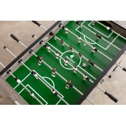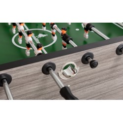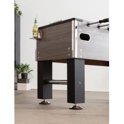 Deluxe Grey Oak ročni nogomet je privlačnega izgleda (imitacija hrastovega lesa v sivi barvi), z dobrimi igralnimi lastnostmi. Je zelo robusten in težak ter zaradi cenovne dostopnosti brez konkurence v razredu tovrstnih ročnih nogometov. Nogomet Deluxe sive barve v imitaciji hrastovega lesa, je cenovno dostopen turnirski ročni nogomet z lepo kombinacijo imitacije lesa (MDF) in kromiranih detajlov. 15mm debela MDF igralna površina ima privzdignjene robove in zato preprečuje žogici, da bi se ustavila oziroma zašla v "mrtvi kot". Polne, kromirane, jeklene igralne palice, s premerom 16mm, tečejo skozi kroglične ležaje v okvirju ročnega nogometa. Zahvaljujoč zelo močnim lesenim in po višini nastavljivim nogam, ki morajo nositi 82kg težak nogomet (dimenzije nog 12.5cm x 12.5cm z dodatno kromirano cevjo za prečno ojačitev) je Deluxe Grey Oak ročni nogomet izredno stabilen in narejen za močno odraslo in strastnejšo igro. Figure so izdelane iz trpežne PVC plastike in se lahko po potrebi enostavno in individualno zamenjajo. Črne ergonomsko oblikovane ročke na igralnih palicah in števca rezultata so ravno tako izdelani iz trpežne PVC plastike. Ob nakupu ročnega nogometa Deluxe Grey Oak vam priporočamo tudi nakup dodatnih žogic za ročni nogomet (priložene žogice so strukturirane in težje vodljive), silikonski sprej, da bodo igralne palice ročnega nogometa vedno gladko drsele skozi ležaje ter pokrivalo, da bo vaša miza za ročni nogomet zaščitena pred vlago, prašenjem in umazanijo.
