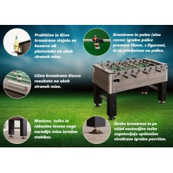 Deluxe Grey Oak nogometu so ob dobavi priloženi tudi: - 2 žogici premera Ø36mm - 11 figur na ekipo - 2 kromirana števca rezultata - kromirane zaščite robov okvirja - 2 kromirana stojala za kozarce ali pločevinke - navodila za sestavljanje (čas sestavljanja cca 1 ura) - garancija 1 leto