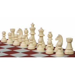 Šahovski set vsebuje vinilno šahovnico, plastične figure (višina Kralja 95mm) ter lično torbo za varno shranjevanje. Velikost rjavo-belih šahovskih polj je 50mm in dimenzija šahovnice je 44,5cm x 44,5cm.